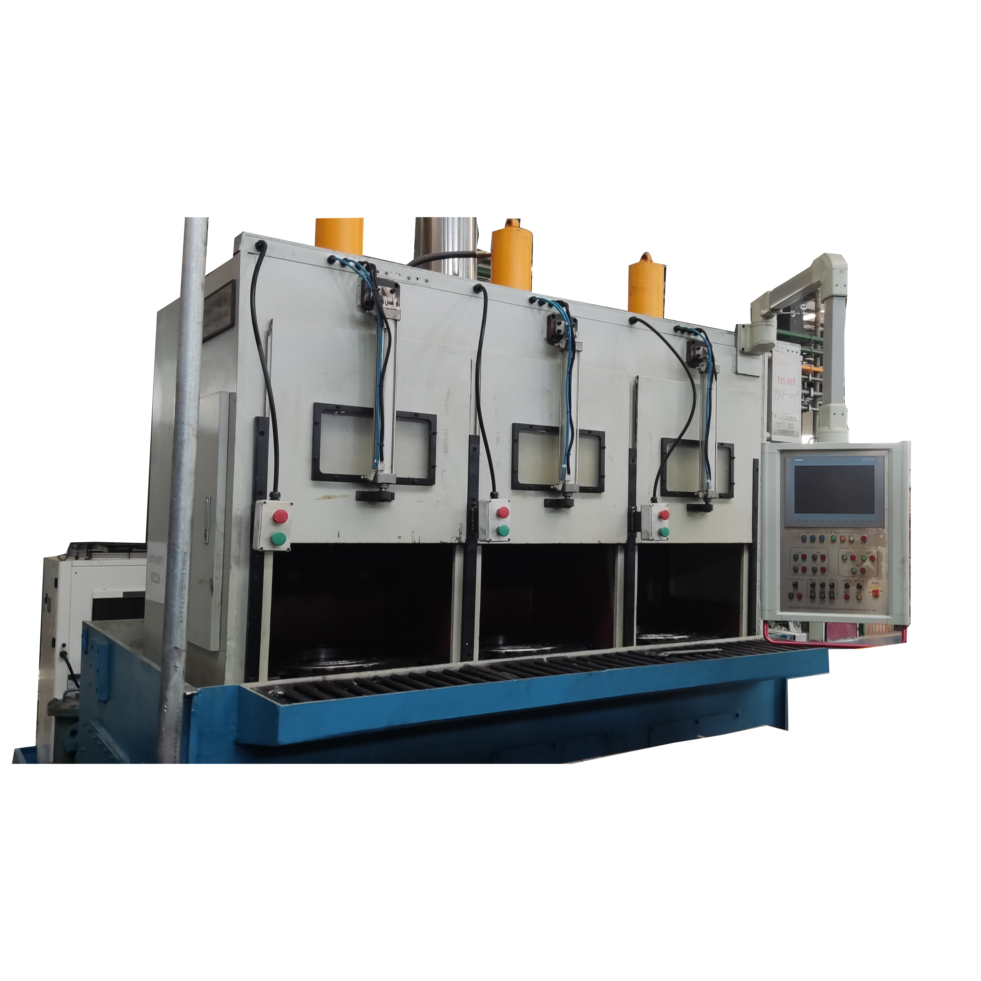 CCY-3S-300A型三工位同步器淬火壓床 ,是用于滲碳緩冷后的汽車同步器零件(如:滑套)進(jìn)行再次加熱限形淬火的專用設(shè)備。對(duì)零件尺寸限形及表面硬化處理,零件通過二次加熱后迅速轉(zhuǎn)移至淬火壓床實(shí)施急速冷卻,并在模具的限形作用下,有效阻止零件的漲縮,減小零件形變和畸變,從而達(dá)到工件尺寸保持一致性和重復(fù)性的目的。該壓床每工位單獨(dú)完成工件的淬火整形過程,可進(jìn)行自動(dòng)/手動(dòng)操作,PLC程序控制。