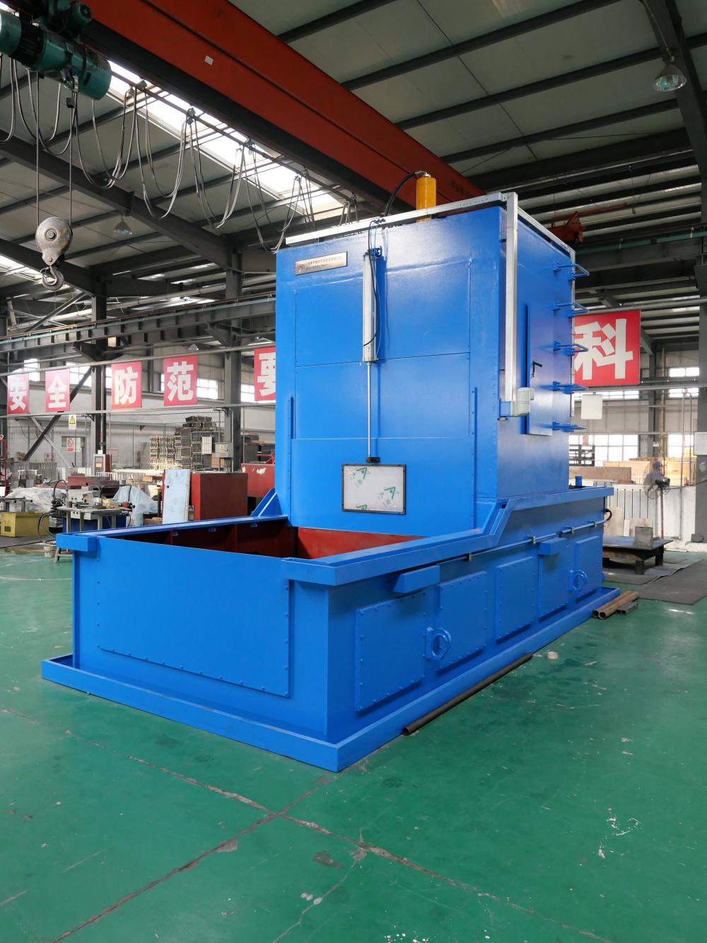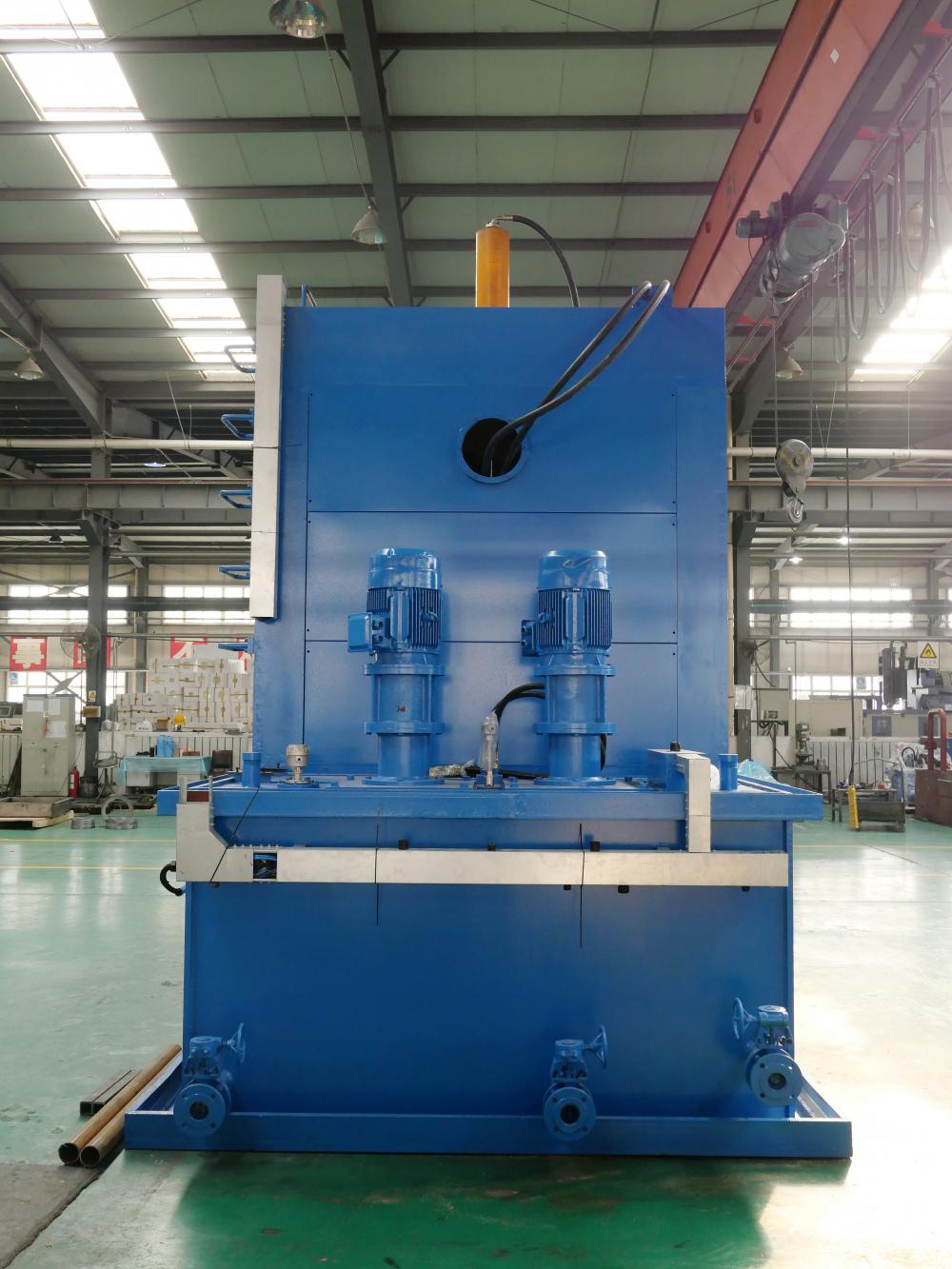 本壓床是一臺(tái)液壓?jiǎn)喂の惠S承淬火壓床,用于軸承套圈的淬火整形,以提升軸承的熱處理精度和質(zhì)量。適用于工件外徑?700-?1500mm和高度≤500mm的透淬鋼套圈類工件的淬火整形。壓床可以單獨(dú)動(dòng)作完成工件的淬火整形過程,可進(jìn)行自動(dòng)/手動(dòng)操作,PLC程序控制。壓床電控柜獨(dú)立安放,操作箱安裝在床身便于操作的位置,PLC采用西門子公司產(chǎn)品,主要電控元件采用進(jìn)口產(chǎn)品或國內(nèi)知名品牌。壓床的設(shè)計(jì)符合安全環(huán)保條例要求,具有自動(dòng)化程度高、可靠性好、整形工件質(zhì)量穩(wěn)定、裝卸模具便捷、使用壽命長、占地面積小等顯著特點(diǎn)。