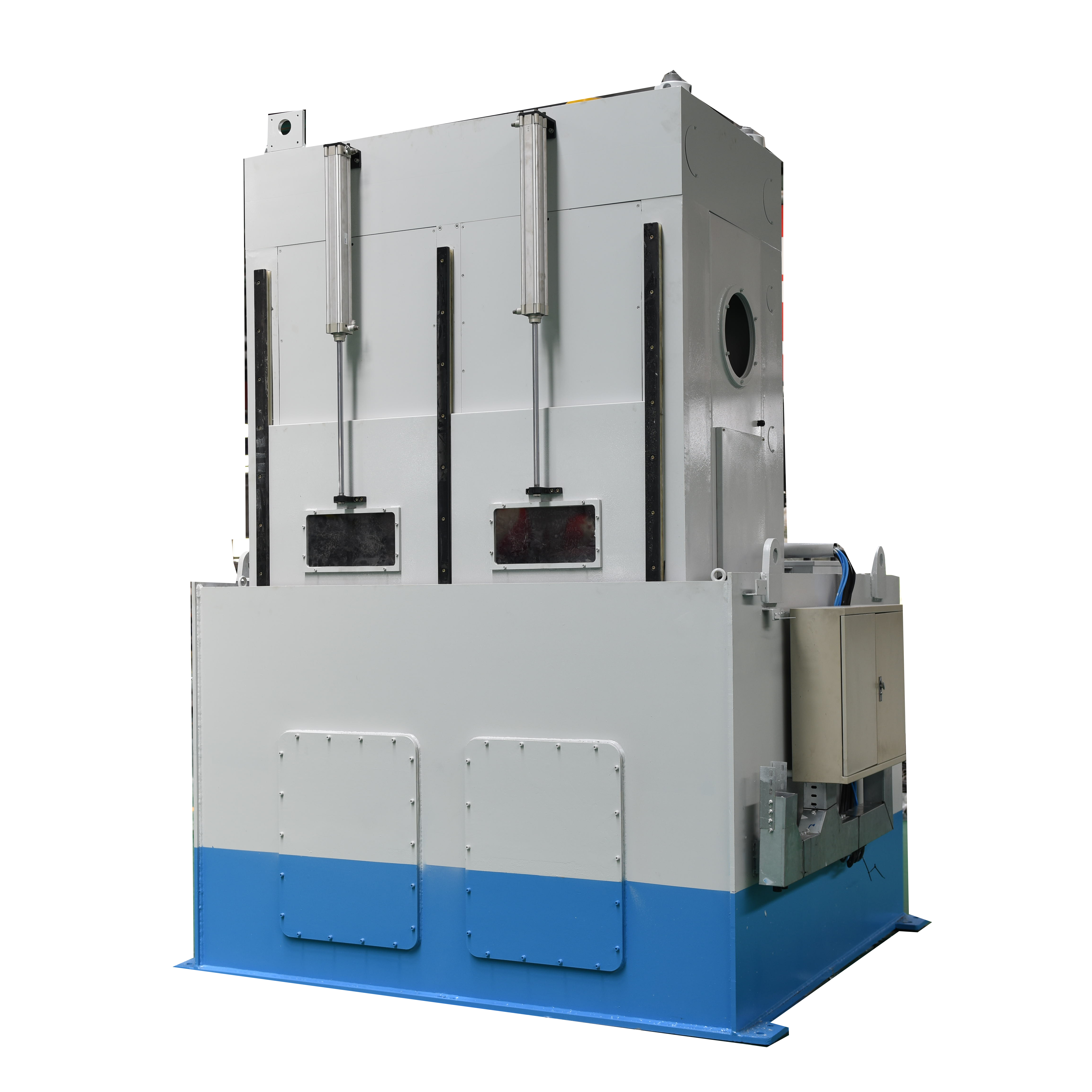 ZCJ-2G-400型二工位軸承淬火壓床,是用于滲碳鋼軸承內(nèi)外套圈進(jìn)行二次淬火的專用設(shè)備。該設(shè)備與加熱爐配套使用,零件通過二次加熱后迅速轉(zhuǎn)移至淬火壓床實施急速冷卻,并在模具的限形作用下,有效阻止零件的漲縮,減小零件形變和畸變,從而使工件尺寸保持一致性和重復(fù)性,以達(dá)到控制軸承的熱處理畸變和提升熱處理質(zhì)量的目的。淬火工件包括:單錐外圈、單錐內(nèi)圈、雙錐外圈、雙錐內(nèi)圈以及圓柱內(nèi)外圈等。壓床可進(jìn)行自動/手動操作,PLC程序控制。