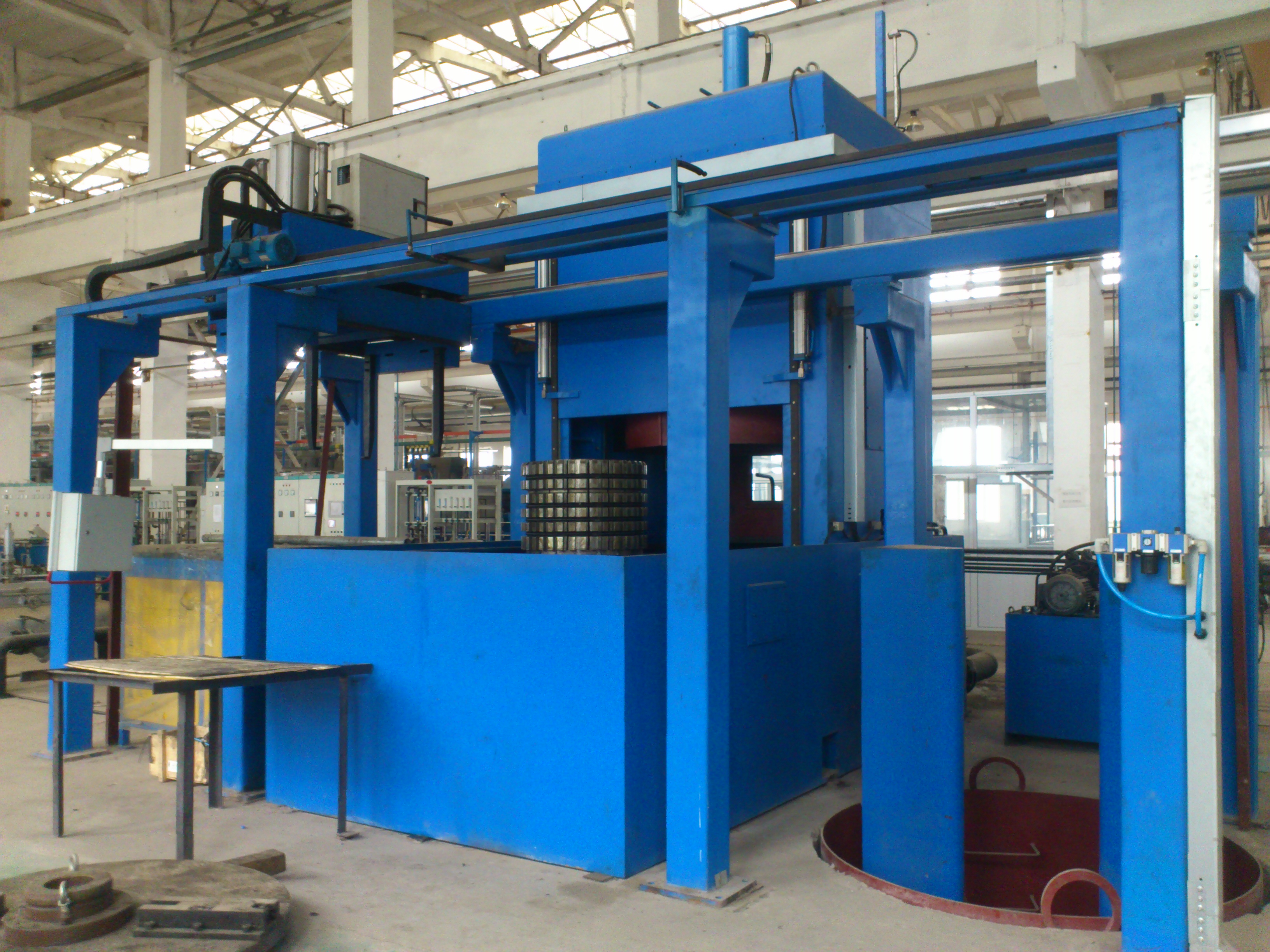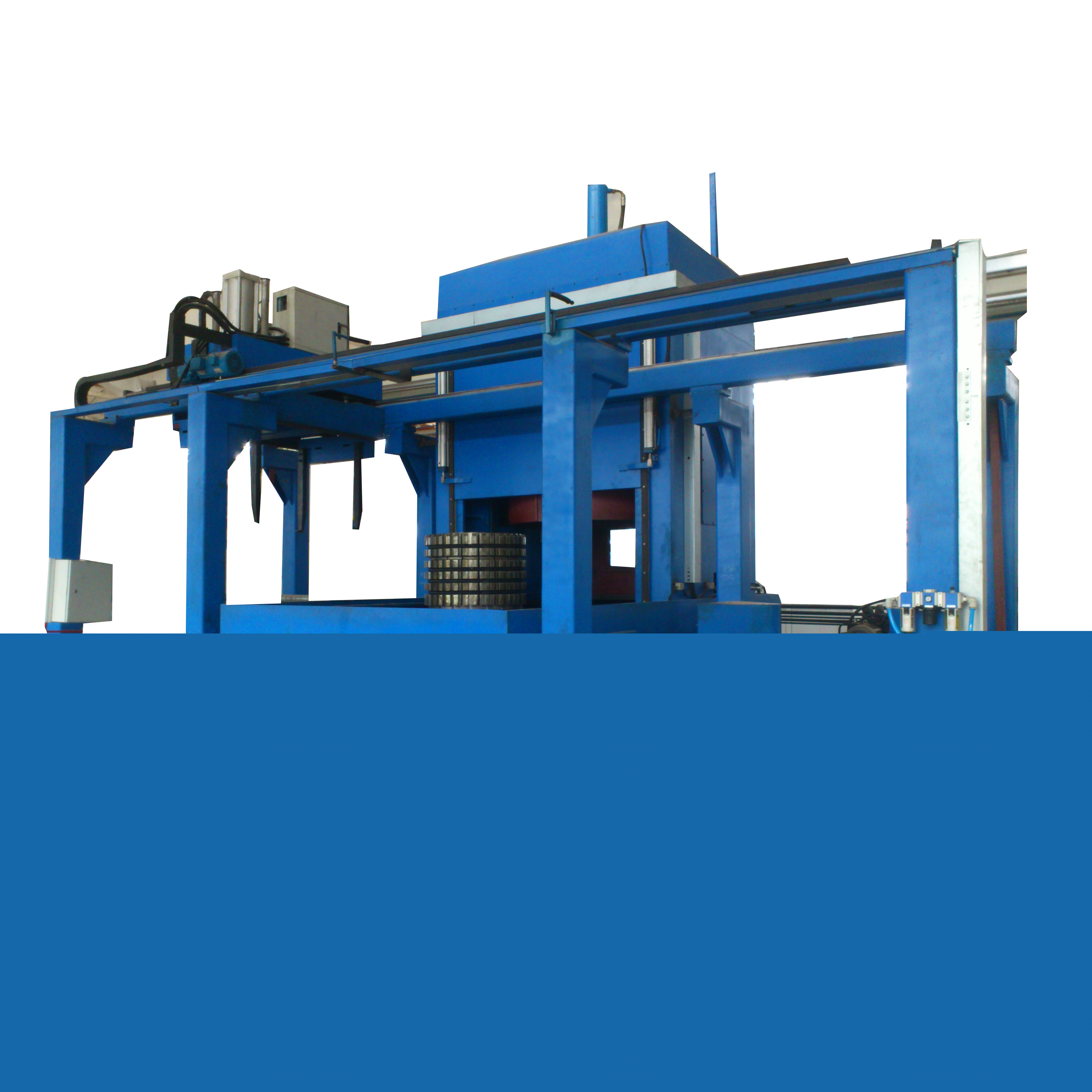 ZCJ-1400型淬火壓床是對(duì)大型軸承內(nèi)、外圈套類工件進(jìn)行淬火的專用設(shè)備。具有自動(dòng)化程度高,工作可靠性強(qiáng),淬火工件質(zhì)量穩(wěn)定、使用壽命長(zhǎng)、占地面積小等顯著特點(diǎn)。對(duì)零件尺寸限形及表面硬化處理,零件通過(guò)二次加熱后迅速轉(zhuǎn)移至淬火壓床實(shí)施急速冷卻,并在模具的限形作用下,有效阻止零件的漲縮,減小零件形變和畸變,從而使工件尺寸保持一致性和重復(fù)性,以提升軸承的熱處理精度和質(zhì)量。淬火工件包括:?jiǎn)五F外圈、單錐內(nèi)圈、雙錐外圈、雙錐內(nèi)圈以及圓柱內(nèi)外圈等。壓床可進(jìn)行自動(dòng)/手動(dòng)操作,PLC程序控制。